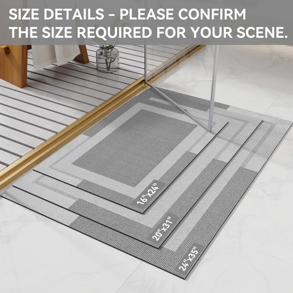 Bath Mat,Ultra Thin Bathroom Rugs,Rubber Bath Mats for Bathroom,No Slip Bath Rugs,Quick Dry,Machine Washable,Low Pile,orbent,Shower Outside,Sink,Home Decor Accessories.Grey,1’5″x2’3″(17x27Inch)
