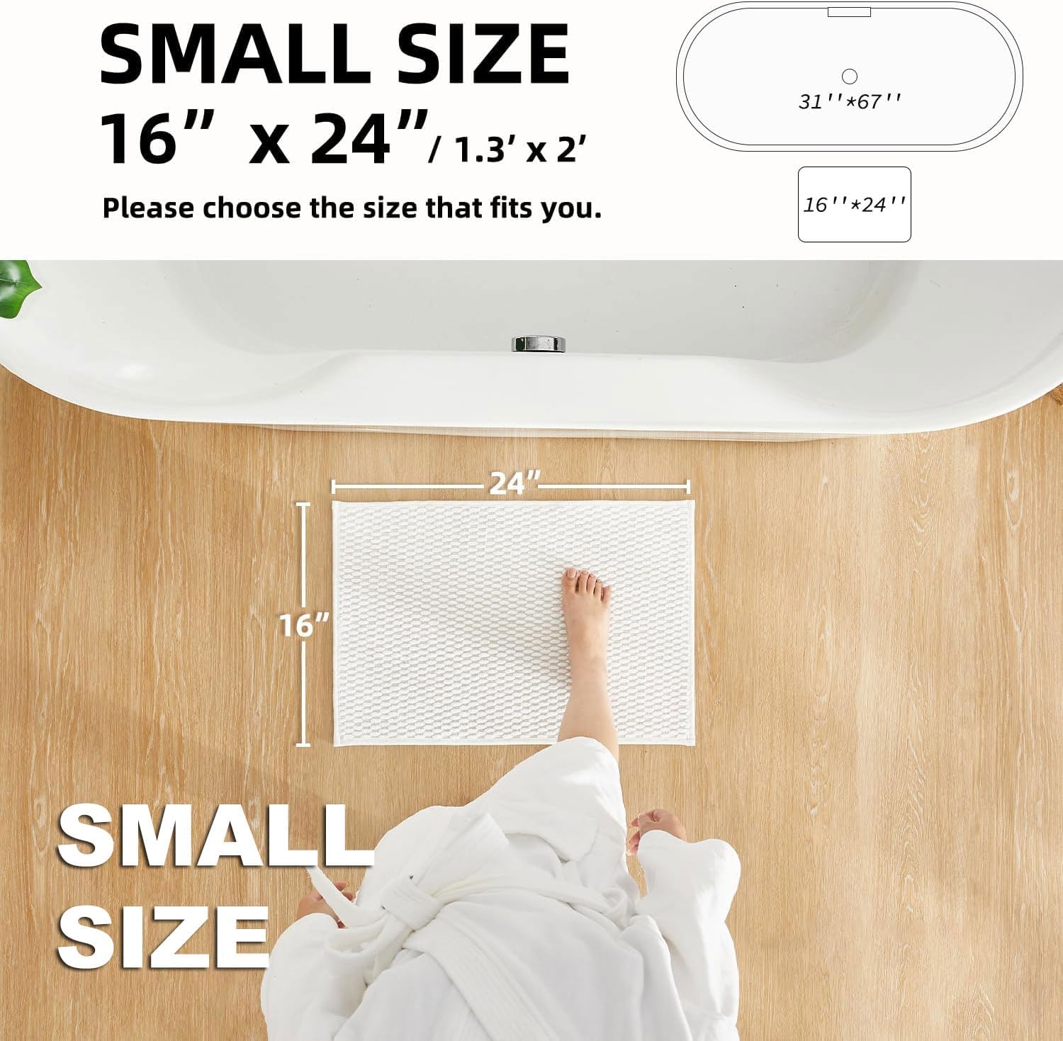 • Upgraded Non-Slip Backing: Our bathroom mats feature natural rubber backing, increasing slip resistance of a floor surface. They tightly grip smooth surfaces without skidding, and hence prevent and reduce the risk of falls for kids and the elderly. Say goodbye to slippery bathroom mat—step out safely with our secure, stable design
